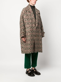 graphic-print single-breasted coat Highlights - Pine green/multicolour - Virgin wool-cotton blend - All-over graphic print - Central rear vent - Buttoned cuffs - Classic lapels - Front button fastening - Long sleeves - Mid-length Made in Italy Composition Outer: Virgin Wool 88%, Cotton 12% Lining: Viscose 50%, Cupro 50% SIZE & FIT Model measurements Height 6 ft 1 in(1.86 m) Bust/Chest 37.79 in(96 cm) Hips 38.58 in(98 cm) Waist 33.85 in(86 cm) FittingInformation Designed for an oversized fit, offering additional room throughout The vented hem offers movement at the rear