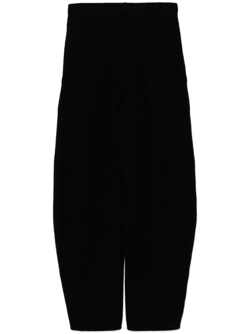 knitted tapered trousers Highlights - Black - Cashmere - Elasticated waistband - Fine knit - Stretch-jersey - Two side patch pockets - Tapered leg Made in Italy Composition Cashmere 100% SIZE & FIT Model measurements Height 5 ft 10 in(1.77 m) Bust/Chest 31.49 in(80 cm) Hips 35.43 in(90 cm) Waist 25.19 in(64 cm) FittingInformation Designed for a tapered fit, these trousers allow for a close fit at the waist and a loose unrestricted fit over the leg with a closer fit towards the ankle The elasticated waist allows for a comfortable fit Made with a midweight knit, this piece offers some stretch