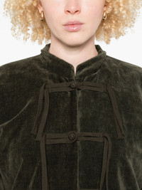 knotted velvet jacket Highlights - Green - Velvet texture - Knotted fastening - Long sleeves - Patch pockets Made in Italy Composition Lining: Viscose 50%, Cupro 50% Outer: Cotton 55%, Linen/Flax 45% SIZE & FIT Model measurements Height 5 ft 9 in(1.75 m) Bust/Chest 34.64 in(88 cm) Hips 36.61 in(93 cm) Waist 26.37 in(67 cm) Washing instructions Hand Wash