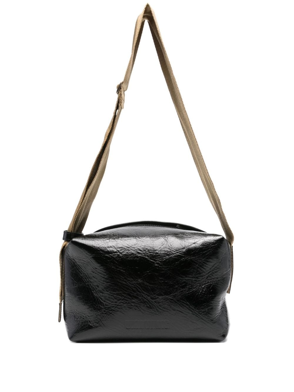 logo-debossed shoulder bag Highlights - Black/mustard yellow - Crinkled finish - Top zip fastening - Adjustable shoulder strap - Debossed logo to the front - Main compartment - Internal slip pocket - Striped lining Made in Italy Composition Outer: Carbon Fiber 100%, Fabric 100% SIZE & FIT Model measurements Height 5 ft 10 in(1.78 m) Bust/Chest 32.67 in(83 cm) Hips 35.43 in(90 cm) Waist 23.22 in(59 cm) Measurement DEPTH 5.9 in(15 cm) HEIGHT 6.69 in(17 cm) STRAP 49.21 in(125 cm) WIDTH 9.84 in(25 cm)