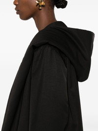 open-front coat Highlights - Black - Textured finish - Spread collar - Classic hood - Long sleeves - Two side welt pockets - Full lining - Mid-length - Straight hem - Open front Made in Italy Composition Lining: Viscose 50%, Cupro 50% Outer: Viscose 54%, Cotton 46% SIZE & FIT Model measurements Height 5 ft 10 in(1.78 m) Bust/Chest 31.49 in(80 cm) Hips 37 in(94 cm) Waist 23.62 in(60 cm) FittingInformation Designed to be unstructured, offering a loose fit throughout Made from a padded non-stretch fabric, giving it no natural elasticity This piece fits true to size – those with a petite frame may wish to take one size down