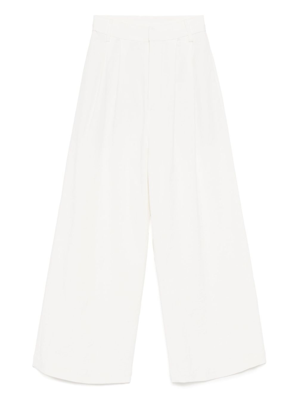 Paella pants Highlights - White - Concealed front button and hook fastening - Two side slash pockets - Two rear welt pockets Made in Italy Composition Linen/Flax 64%, Viscose 35%, Elastane 1% SIZE & FIT Model measurements Height 5 ft 9 in(1.76 m) Bust/Chest 30.7 in(78 cm) Hips 33.46 in(85 cm) Waist 24.4 in(62 cm) FittingInformation Designed with a wide-leg cut, these trousers allow for a close fit at the waist and offer a loose and roomy fit over the leg Made from a midweight non-stretch fabric