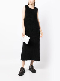 panelled wool midi dress black beige wool contrasting panel detail brocade effect shift style rear slit round neck sleeveless raw-cut hem ankle-length Made in Italy Composition Wool 100% SIZE & FIT Model measurements Height 5 ft 11 in(1.8 m) Bust/Chest 28.34 in(72 cm) Hips 35.43 in(90 cm) Waist 23.62 in(60 cm) FittingInformation This piece fits true to size. We recommend you get your regular size Cut for a loose fit Made with a mid-weight non-stretch fabric