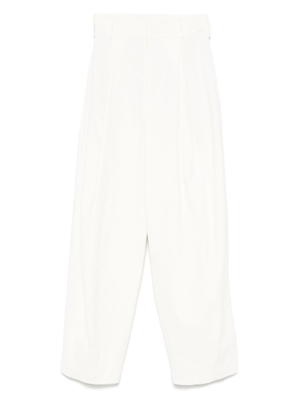 Paw trousers Highlights - White - Concealed front button, hook and zip fastening - Belt loops - Two side slit pockets - Two rear button-fastening pockets Made in Italy Composition Linen/Flax 64%, Viscose 35%, Elastane 1% SIZE & FIT Model measurements Height 5 ft 10 in(1.79 m) Bust/Chest 35.43 in(90 cm) Hips 35.03 in(89 cm) Waist 25.19 in(64 cm) FittingInformation Designed for a tapered fit, these trousers allow for a close fit at the waist and a loose unrestricted fit over the leg with a closer fit towards the ankle Made from a midweight stretch fabric, this piece offers elasticity and flexibility when worn Washing instructions Hand Wash