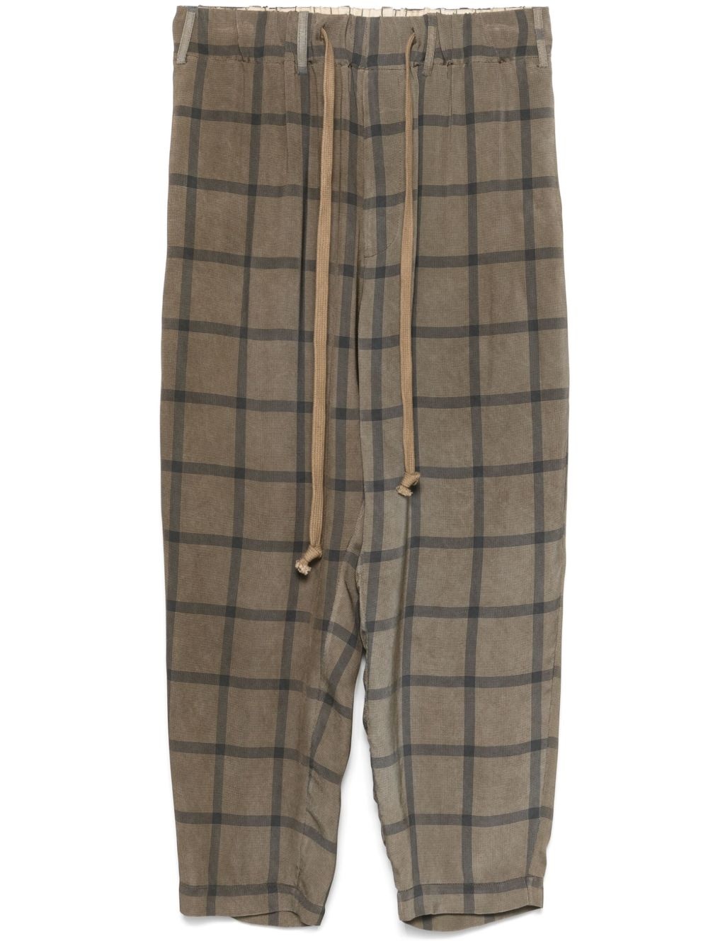 Pigiama trousers Highlights - Earth brown - Elasticated drawstring waistband - Belt loops - Two side slit pockets - Two rear button-fastening jetted pockets Made in Italy Composition Viscose 100% SIZE & FIT Model measurements Height 6 ft 2 in(1.87 m) Bust/Chest 38.18 in(97 cm) Hips 36.61 in(93 cm) Waist 29.13 in(74 cm) FittingInformation Designed for a tapered leg, offering a loose unrestricted fit over the leg with a closer fit towards the ankle The elasticated waist allows for a comfortable fit Made from a midweight non-stretch fabric
