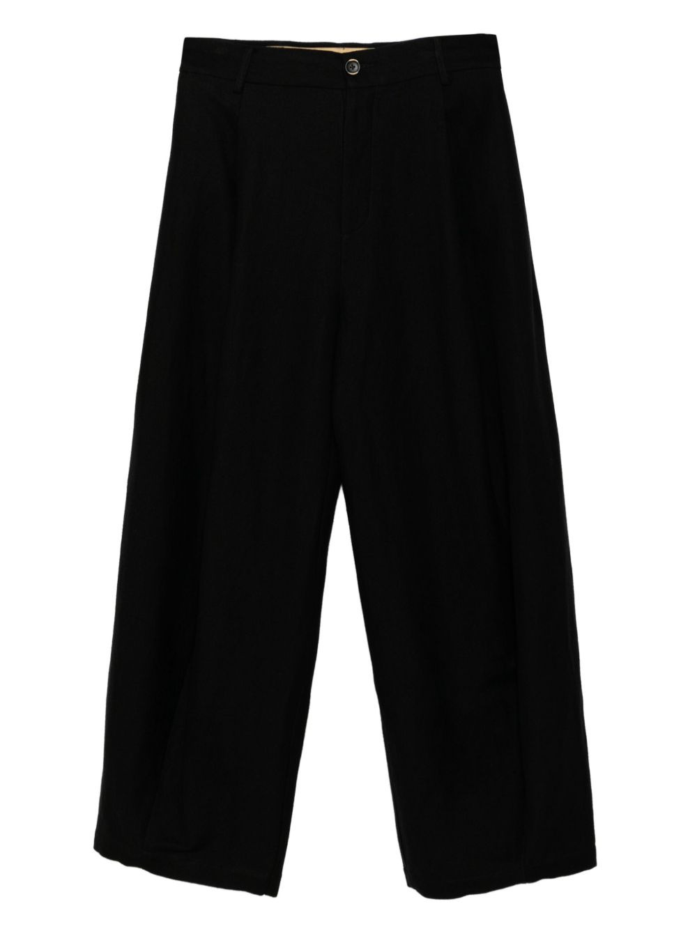 pleated pocket-detail trousers Highlights - Black - Linen-wool blend - Pleated design - Back-pocket detail - Straight leg Made in Italy Composition Linen/Flax 59%, Virgin Wool 41% SIZE & FIT Model measurements Height 6 ft 2 in(1.87 m) Bust/Chest 33.07 in(84 cm) Hips 35.43 in(90 cm) Waist 26.77 in(68 cm) FittingInformation Designed for a relaxed tapered leg, allowing a comfortable loose fit above the knee with a closer fit towards the calves Made from a midweight non-stretch fabric Washing instructions Hand Wash