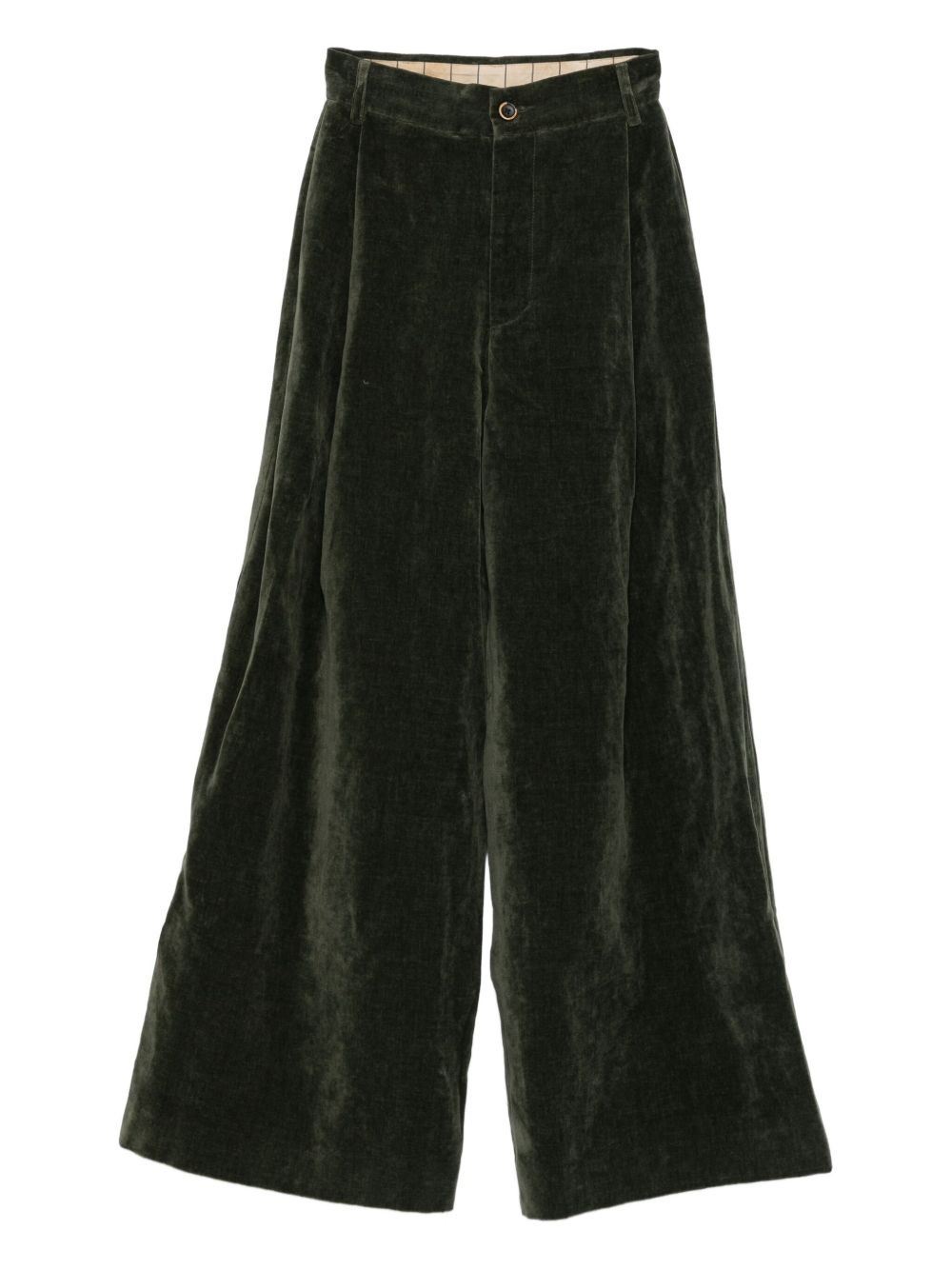 pleated velvet trousers Highlights Made in Italy Composition Outer: Cotton 55%, Linen/Flax 45% Lining: Cupro 100%, Viscose 50% SIZE & FIT Model measurements Height 5 ft 11 in(1.8 m) Bust/Chest 32.67 in(83 cm) Hips 36.22 in(92 cm) Waist 24.4 in(62 cm)