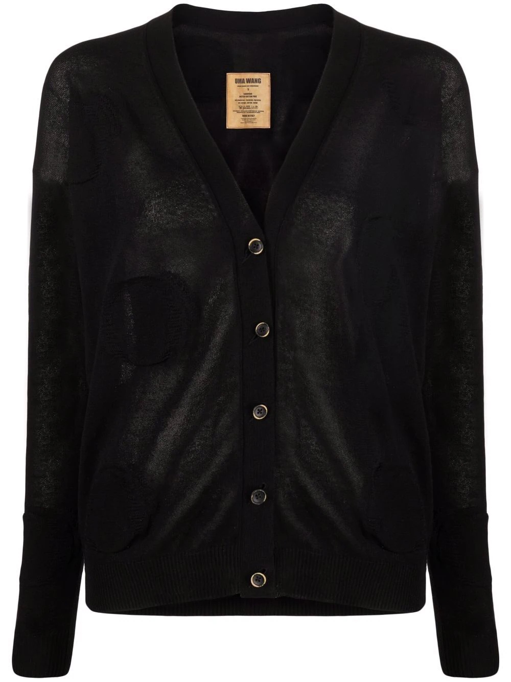 polka-dot cardigan Uma Wang provides an effortless aesthetic with this cardigan. In a versatile black colourway, it boasts a relaxed silhouette, punctuated with tonal polka dots for a playful twist. Made in Italy Composition Polyester 54%, Cotton 46% SIZE & FIT Model measurements Height 5 ft 10 in(1.78 m) Bust/Chest 31.88 in(81 cm) Hips 34.64 in(88 cm) Waist 24.01 in(61 cm) FittingInformation This piece fits true to size. We recommend you get your regular size Cut for a loose fit Made with a mid-weight fabric Washing instructions Hand Wash