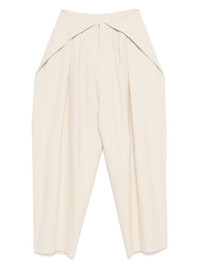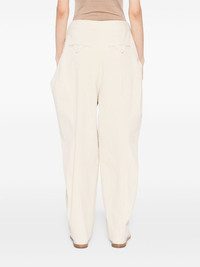 Pride trousers Highlights - Cream white - Concealed front button, hook and zip fastening - Two side slash pockets - Two rear welt pockets Made in Italy Composition Linen/Flax 67%, Viscose 32%, Elastane 1% SIZE & FIT Model measurements Height 5 ft 9 in(1.76 m) Bust/Chest 30.7 in(78 cm) Hips 33.46 in(85 cm) Waist 24.4 in(62 cm) FittingInformation Designed for a relaxed tapered cut, these trousers allow for a close fit at the waist and offer a loose fit at the thighs, with a closer fit toward the ankles Made from a midweight stretch fabric, this piece offers elasticity and flexibility when worn