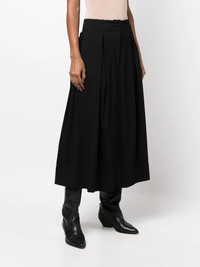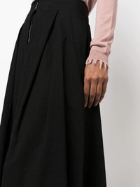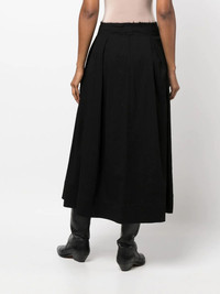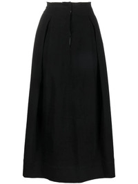raw-edge pleated long skirt black linen blend high waist raw edge pleat detailing concealed front fastening long length Made in Italy Composition Linen/Flax 54%, Viscose 44%, Spandex/Elastane 2% SIZE & FIT Model measurements Height 5 ft 11 in(1.8 m) Bust/Chest 31.49 in(80 cm) Hips 35.82 in(91 cm) Waist 24.8 in(63 cm) FittingInformation This piece fits true to size. We recommend you get your regular size Designed for a loose fit with a close fit at the waist Made with a mid-weight stretch fabric Washing instructions Hand Wash