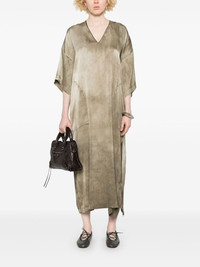 satin midi dress Highlights - Light brown - Side slits - V-neck - Short sleeves Made in Italy Composition Silk 94%, Elastane 6% SIZE & FIT Model measurements Height 5 ft 9 in(1.75 m) Bust/Chest 34.64 in(88 cm) Hips 36.61 in(93 cm) Waist 26.37 in(67 cm) FittingInformation Designed to be unstructured, offering a loose fit throughout The vented hem offers movement at the rear Made from a midweight stretch fabric, this piece offers elasticity and flexibility when worn