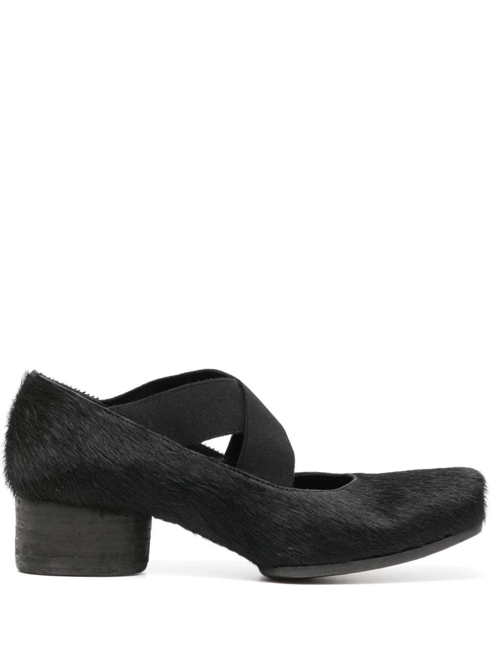 Ballerina pumps Uma Wang's pumps are a nod to classic ballerina pumps. This model is reinvented with a square toe, crossover elasticated straps and a mid-block heel. Highlights - Black - Calf leather - Slip-on style - Elasticated straps - Square toe - Branded leather insole - Block heel Made in Italy Composition Sole: Calf Leather 100% Lining: Calf Leather 100% Outer: Calf Leather 100% SIZE & FIT Measurement HEEL 1.57 in(4 cm) HEIGHT 2.55 in(6.5 cm) Sole height 0.19 in(0.5 cm)