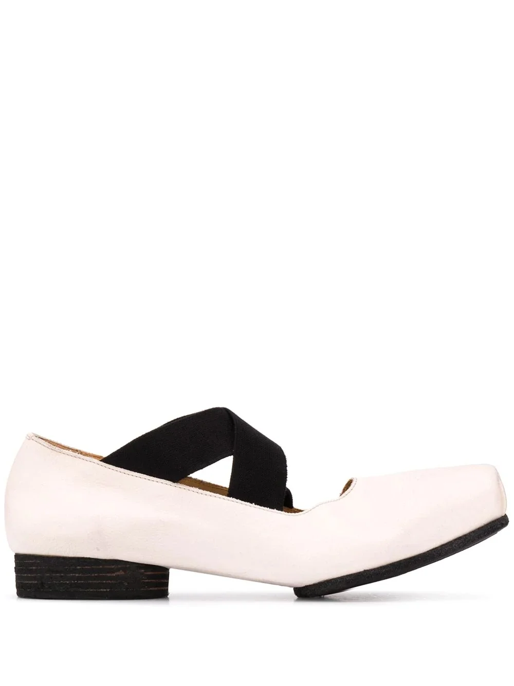 strappy heeled ballerina shoes Highlights - White - Leather - Square toe - Crossover strap detail - Low stacked heel Made in Italy Composition Leather 100% SIZE & FIT Measurement HEEL 1.18 in(3 cm) Sole height 0.39 in(1 cm)