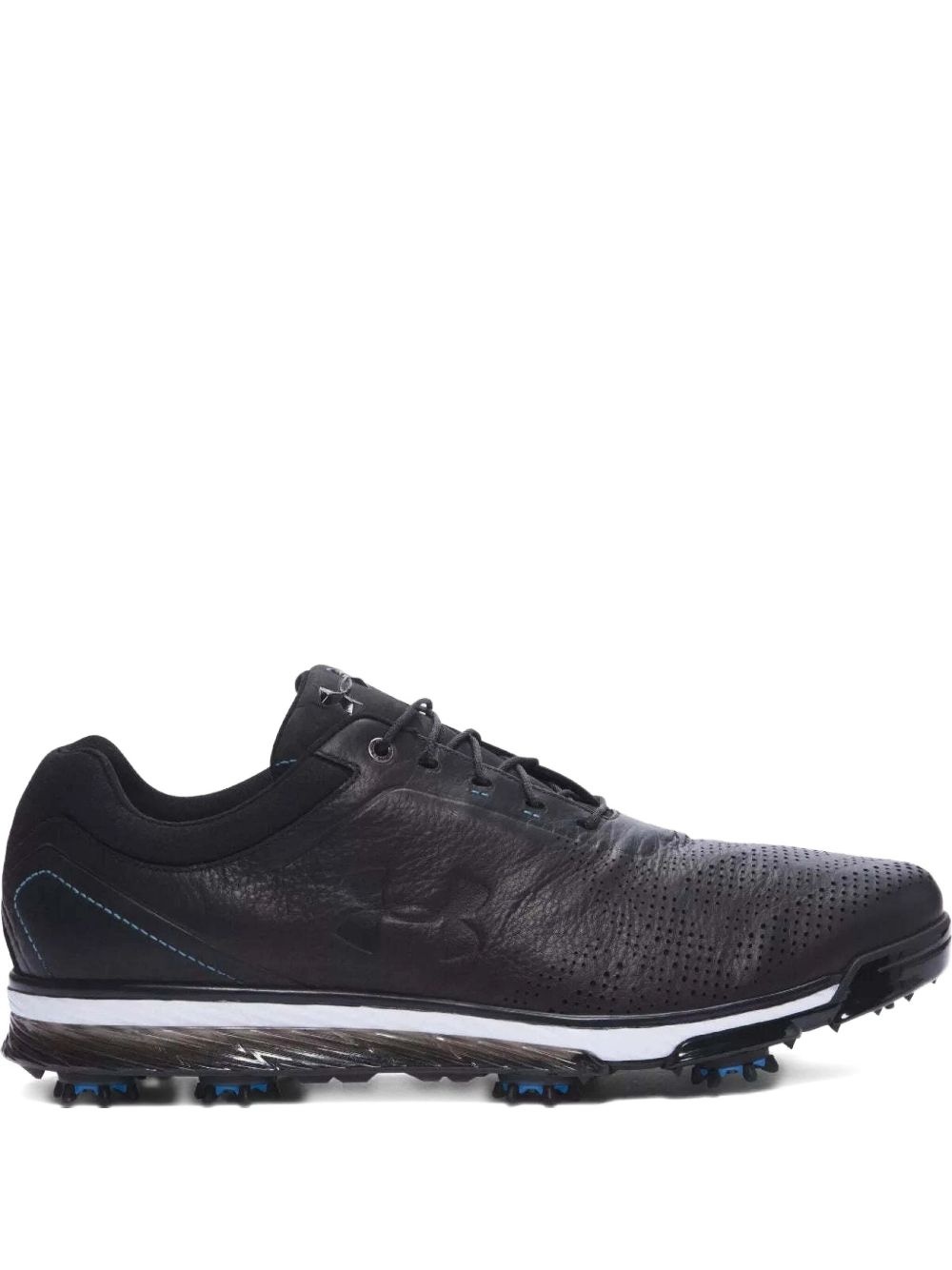 Tempo Tour "Black" golf cleats Highlights - Black - Calf leather - Front lace-up fastening - Logo print to the side - Perforated toebox - Round toe - Branded insole - Soft-spike sole - These styles are supplied by a premium and authenticated sneaker marketplace. stocking only the most sought-after footwear, they source and curate some of the most hard to find sneakers from around the world. Imported Composition Lining: Fabric 100% Outer: Calf Leather 100% Sole: Rubber 100%