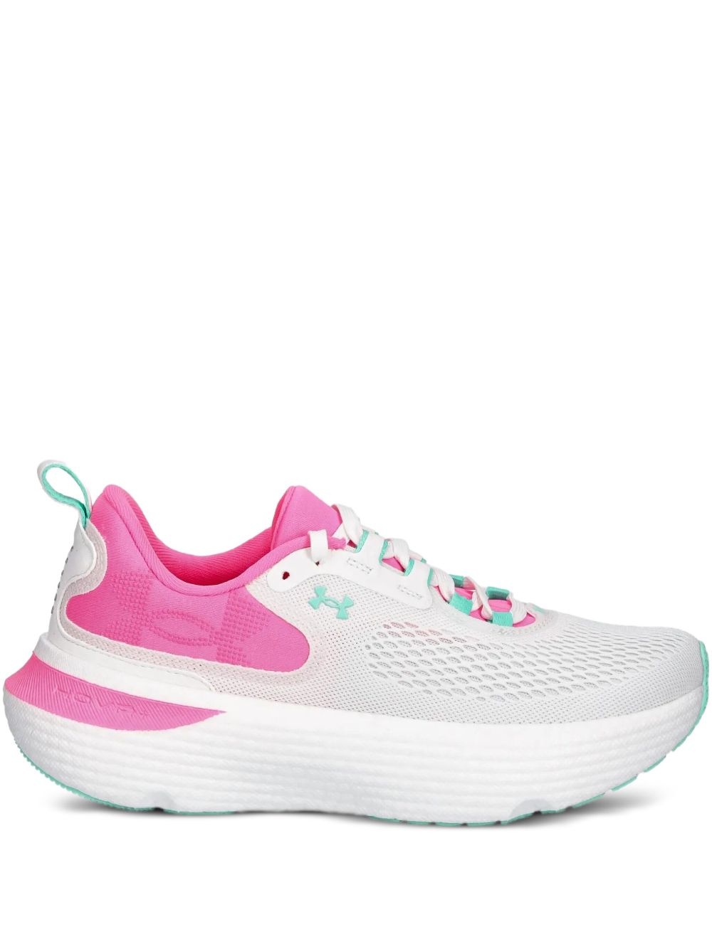 UA Infinite Pro 2 mesh sneakers Highlights - White - Mesh upper - Pink accents - Padded collar - Lace-up design - Cushioned sole Imported Composition Outer: Mesh 100% Sole: Rubber 100% Lining: Fabric 100%