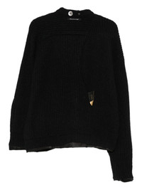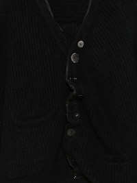 asymmetric cardigan Highlights - Black - Ribbed knit - Long sleeves - Button fastening - V-neck - Front patch pockets - Asymmetric design Imported Composition Silk 100%, Alpaca 52%, Nylon 36%, Wool 12% Washing instructions Dry Clean Only
