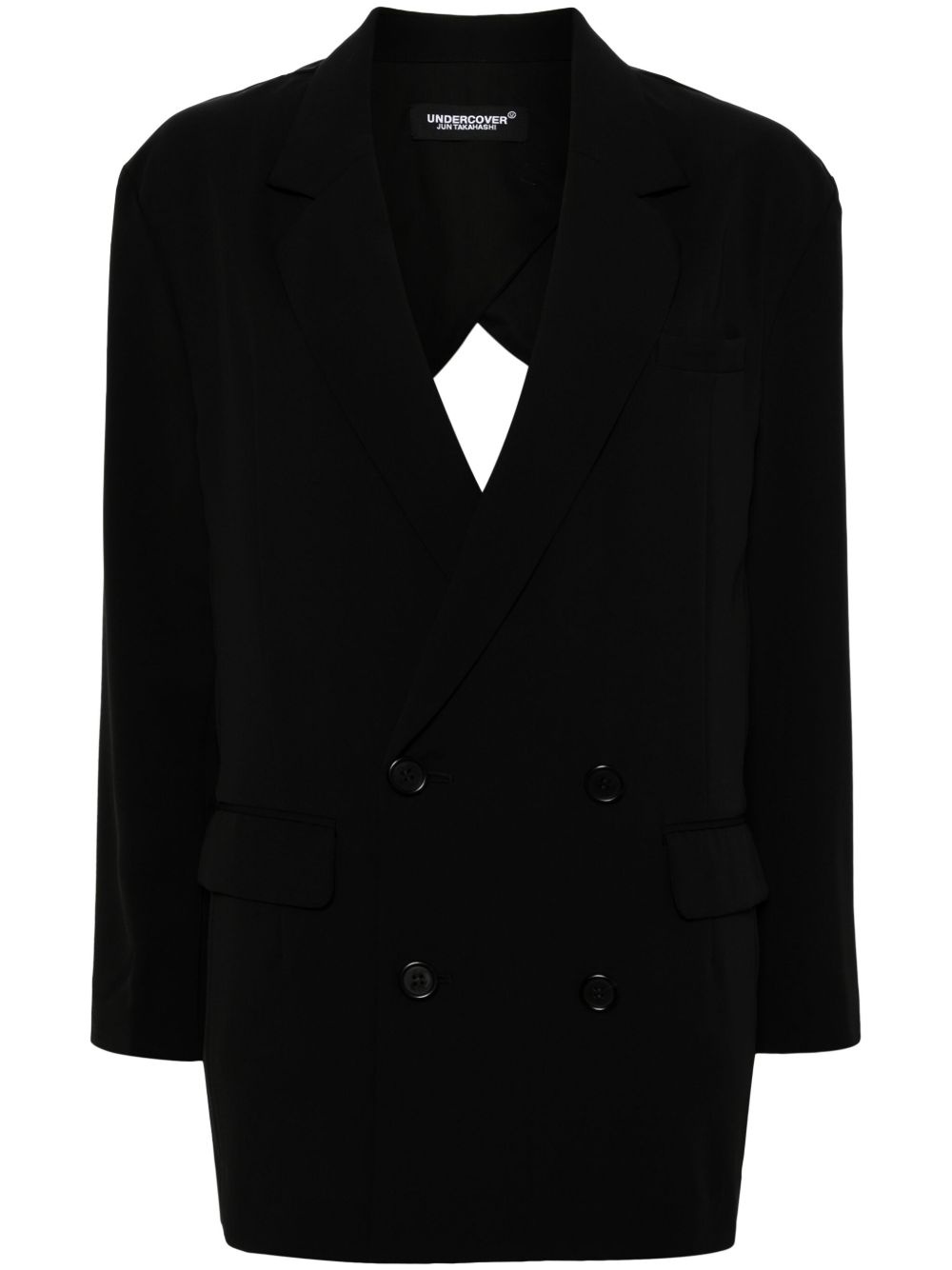 asymmetric double-breasted blazer Highlights - Black - Asymmetric design - Notched lapels - Chest welt pocket - Long sleeves - Buttoned cuffs - Two side flap pockets - Open back - Double-breasted button fastening Imported Composition Cupro 100% Outer: Polyester 51%, Triacetate 49% Lining: Cupro 100% Washing instructions Dry Clean Only
