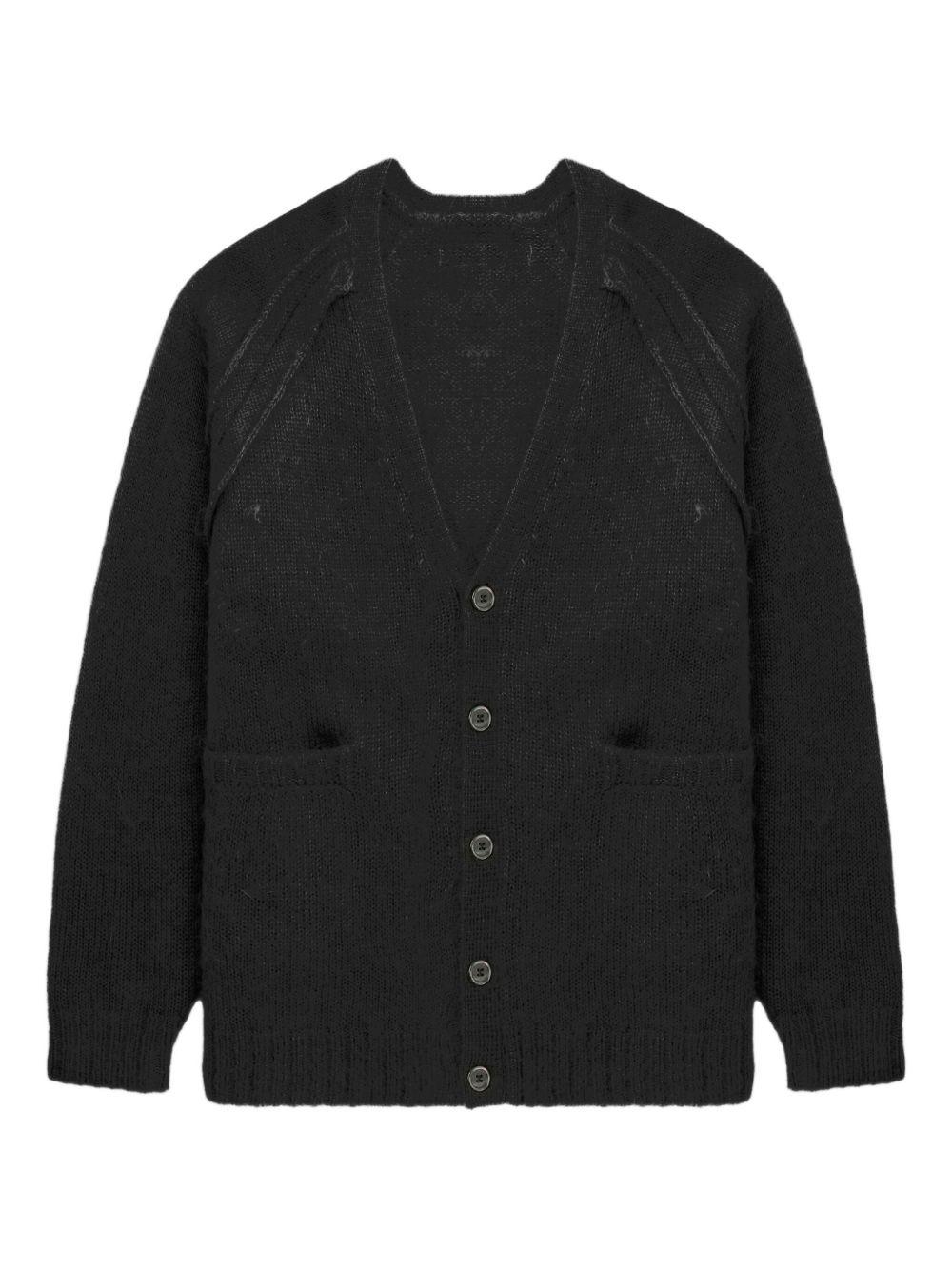 buttoned raglan-sleeve cardigan Highlights - Black - Raglan sleeves - Button front - V-neck - Mohair wool blend - Patch pockets Imported Composition Mohair 56%, Nylon 44% Washing instructions Read Manufacturer Guidelines