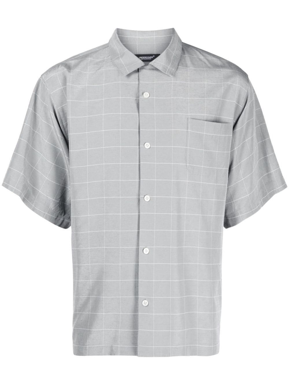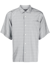 check-pattern silk-blend shirt Highlights - Light grey/white - Silk blend - Check pattern - Notched collar - Short sleeves - Front button fastening - Straight hem Imported Composition Rayon 48%, Acetate 41%, Silk 11% SIZE & FIT Model measurements Height 6 ft 2 in(1.87 m) Bust/Chest 34.25 in(87 cm) Hips 36.22 in(92 cm) Waist 29.52 in(75 cm) FittingInformation Designed for a boxy fit, intended for a loose fit throughout Made from a midweight non-stretch fabric This piece fits true to size – take your usual size Washing instructions Dry Clean Only