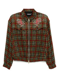 checked zip-up jacket Highlights - Charcoal grey - Front zip fastening - Two button-fastening chest pockets - Elasticated cuffs - Elasticated hem Imported Composition Outer: Silk 97%, Polyester 3% Lining: Polyester 100% Washing instructions Dry Clean Only