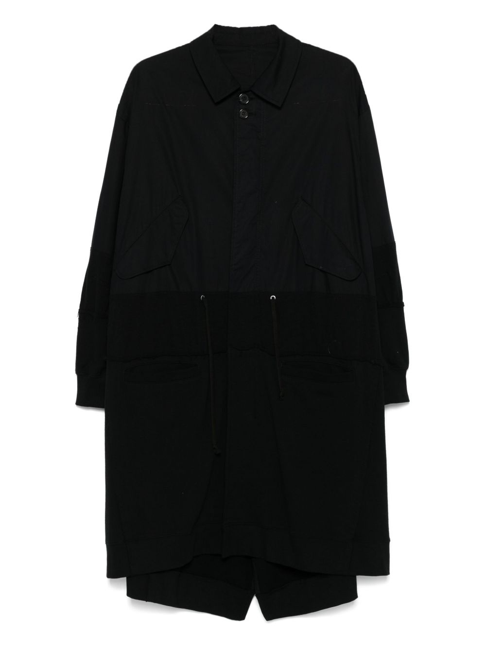 cotton coat Highlights - Black - Concealed front fastening - Two side flap pockets - Drawstring waist - Central rear vent Imported Composition Cotton 100% Washing instructions Dry Clean Only