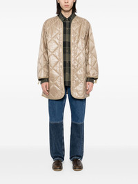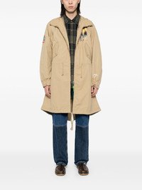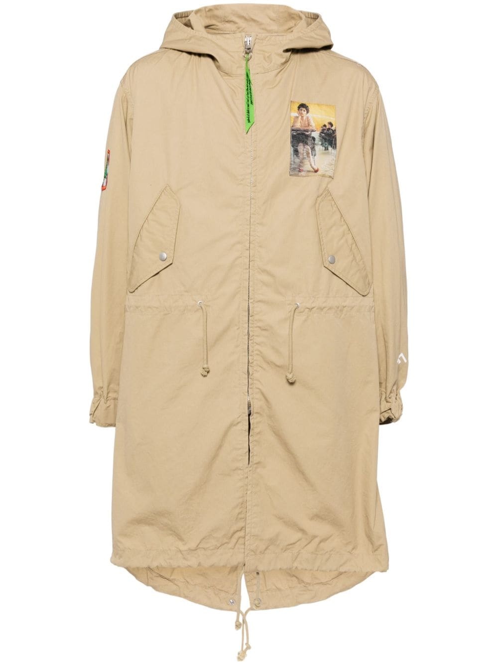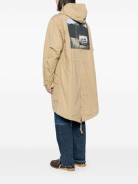 cotton coat Highlights - Light brown - Ripstop texture - Funnel neck - Zip fastening - Graphic print at the chest - Two front flap pockets - Long sleeves with buttoned cuffs - Drawstring waist - Graphic print to the rear - Drawstring hem - Mid-length Imported Composition Lining: Nylon 100% Outer: Cotton 100% Filling: Polyester 100% SIZE & FIT Model measurements Height 6 ft 2 in(1.87 m) Bust/Chest 33.07 in(84 cm) Hips 35.43 in(90 cm) Waist 26.77 in(68 cm) FittingInformation Designed to be unstructured, offering a loose fit throughout The detachable internal gilet offers a roomier fit Made from a padded non-stretch fabric, giving it no natural elasticity