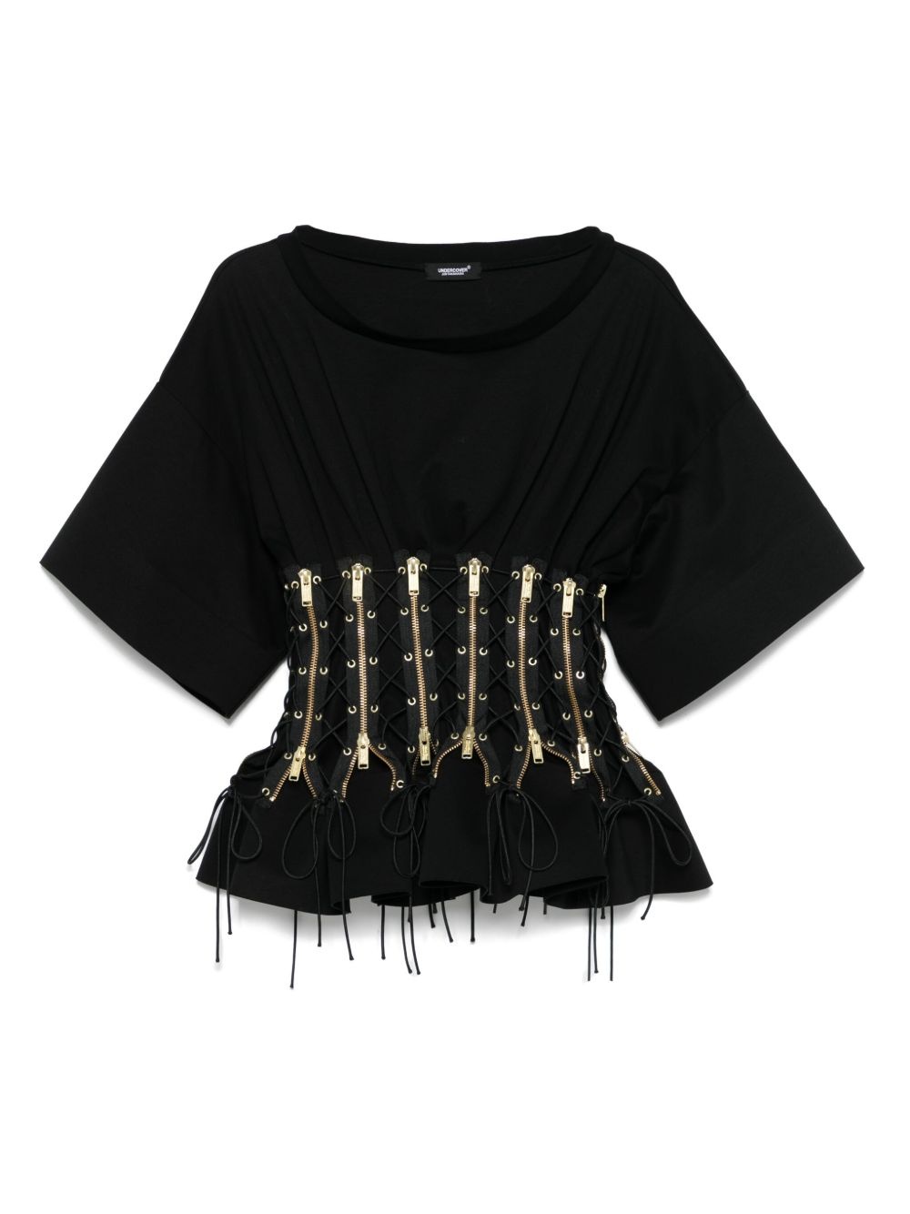 cotton T-shirt Highlights - Black - Fitted waistline - Round neck - Short sleeves - Flared hem Imported Composition Cotton 100% Washing instructions Do Not Wash/Do Not Dry Clean