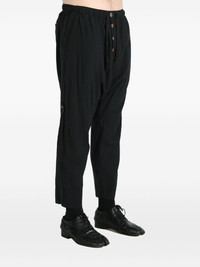 cropped tapered trousers Highlights - Black - Front button fastening - Elasticated drawstring waistband - Two rear patch pockets - Strap detailing Imported Composition Cotton 50%, Rayon 50%