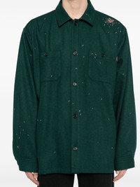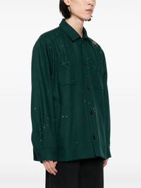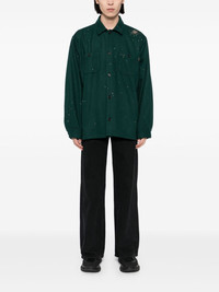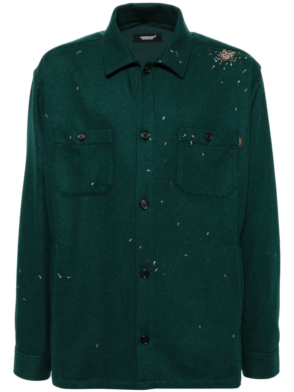 cross embroidery long-sleeves shirt Highlights - Dark green/multicolour - Wool blend - Front button fastening - Classic collar - Two button-fastening chest pockets - Two side welt pockets - All-over cross embroidery - Buttoned cuffs - Long sleeves - Straight hem Imported Composition Lining: Cotton 100% Outer: Wool 67%, Polyester 22%, Nylon 6%, Acrylic 5% SIZE & FIT Model measurements Height 6 ft 2 in(1.87 m) Bust/Chest 33.07 in(84 cm) Hips 35.43 in(90 cm) Waist 26.77 in(68 cm) FittingInformation Designed to be unstructured, offering a loose fit throughout Constructed with additional length on the sleeve Made from a midweight non-stretch fabric