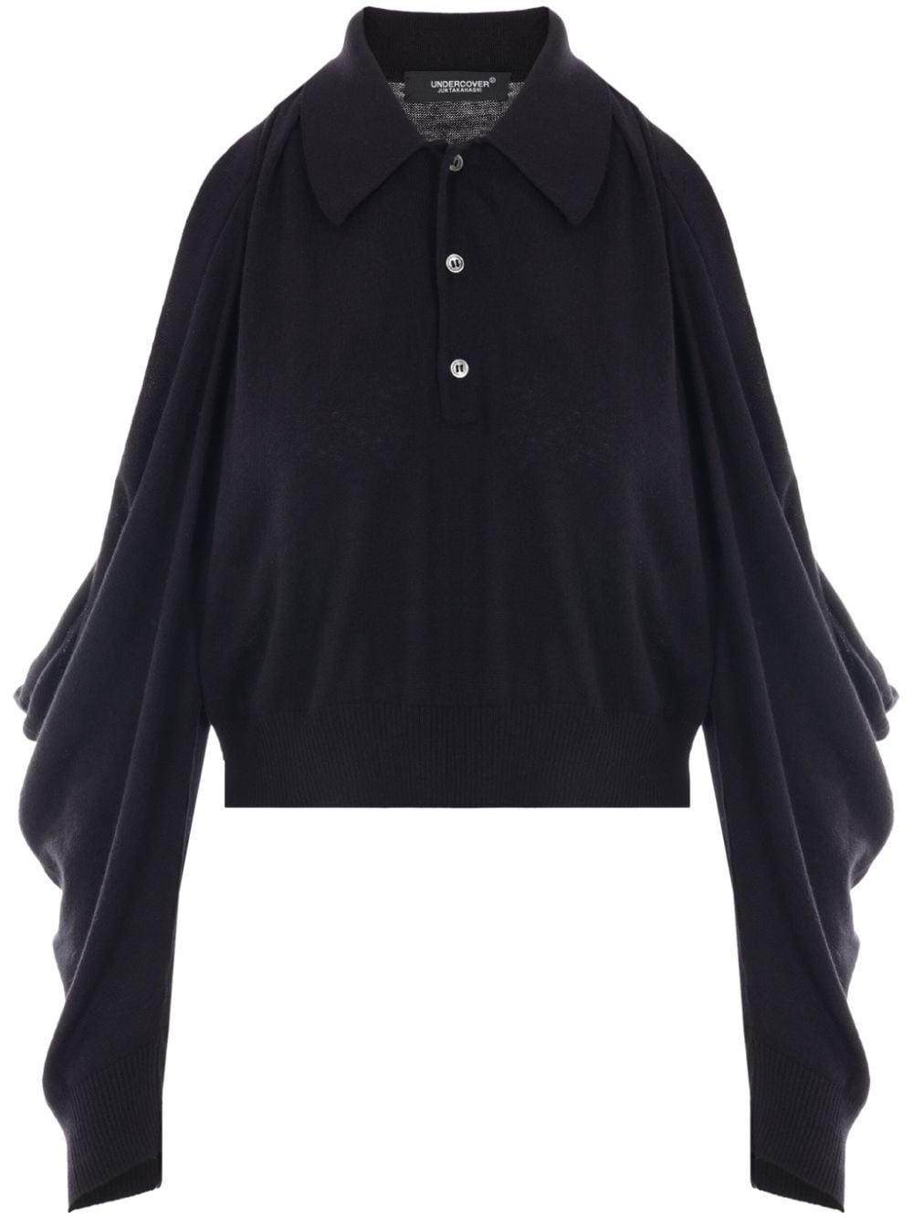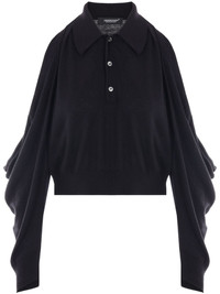 cut-out polo top Highlights - Black - Cotton-silk blend - Cut-out detailing - Classic collar - Front button placket - Long sleeves - Straight hem Imported Composition Cotton 70%, Nylon 20%, Silk 10%