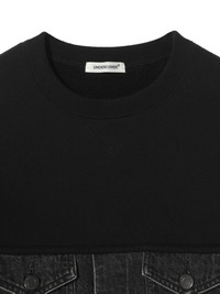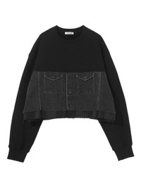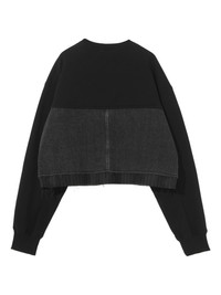 denim-panel cropped sweatshirt