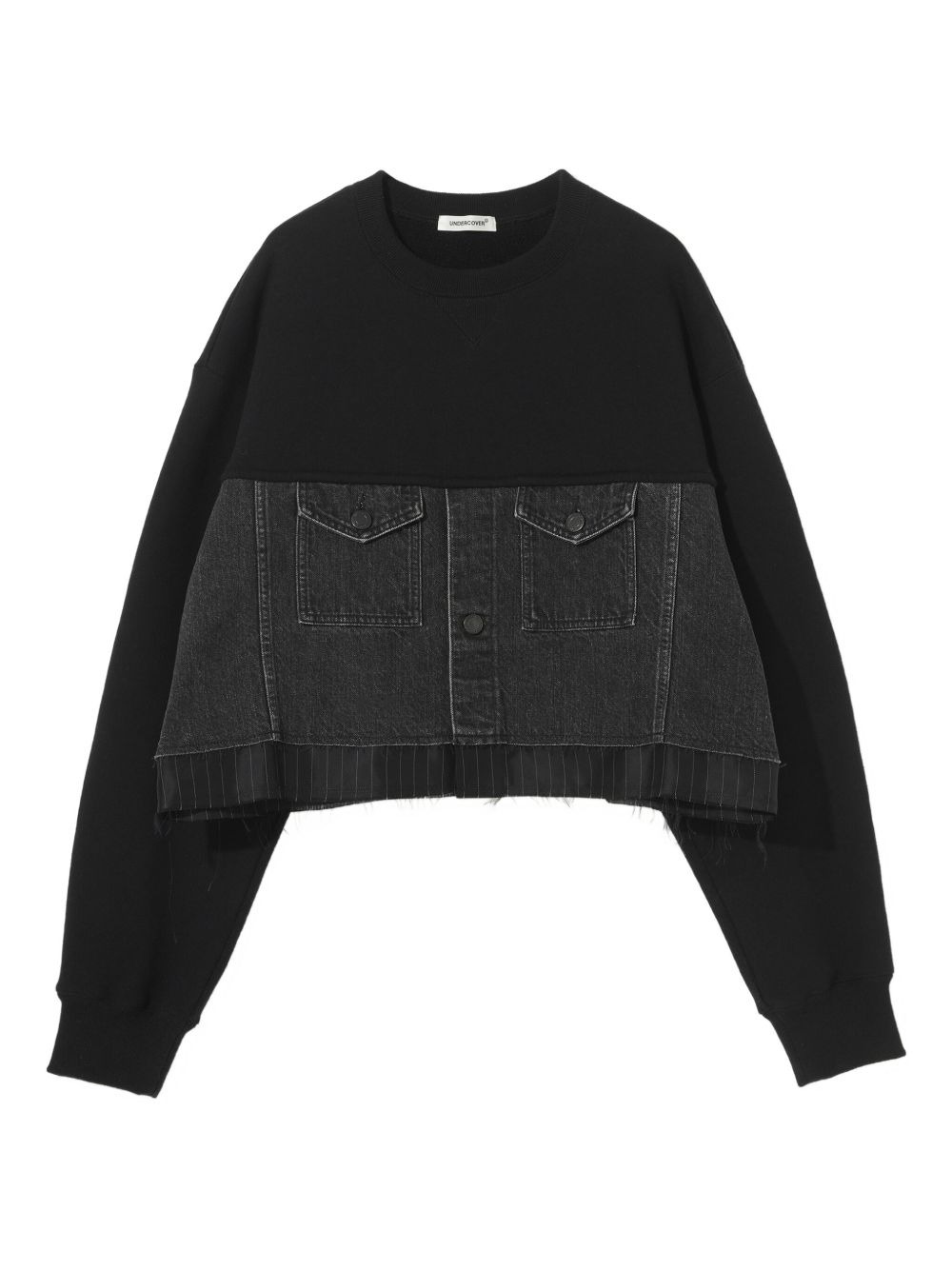 denim-panel cropped sweatshirt Highlights - Black - Contrast denim panel - Raw hem - Long sleeves Imported Composition Cotton 100% Washing instructions Read Manufacturer Guidelines