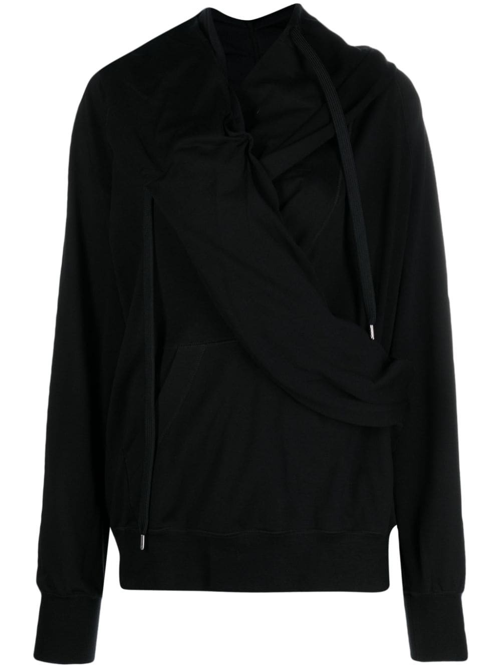 draped cotton-blend hoodie Highlights - Black - Cotton blend - Jersey texture - Draped detailing - Drawstring hood - Long sleeves - Fitted-cuff sleeves - Straight hem Imported Composition Cotton 62%, Rayon 38% SIZE & FIT Measurement SLEEVE LENGTH 33.93 in(86.2 cm) LENGTH 25.55 in(64.9 cm) WIDTH 23.22 in(59 cm) Washing instructions Hand Wash