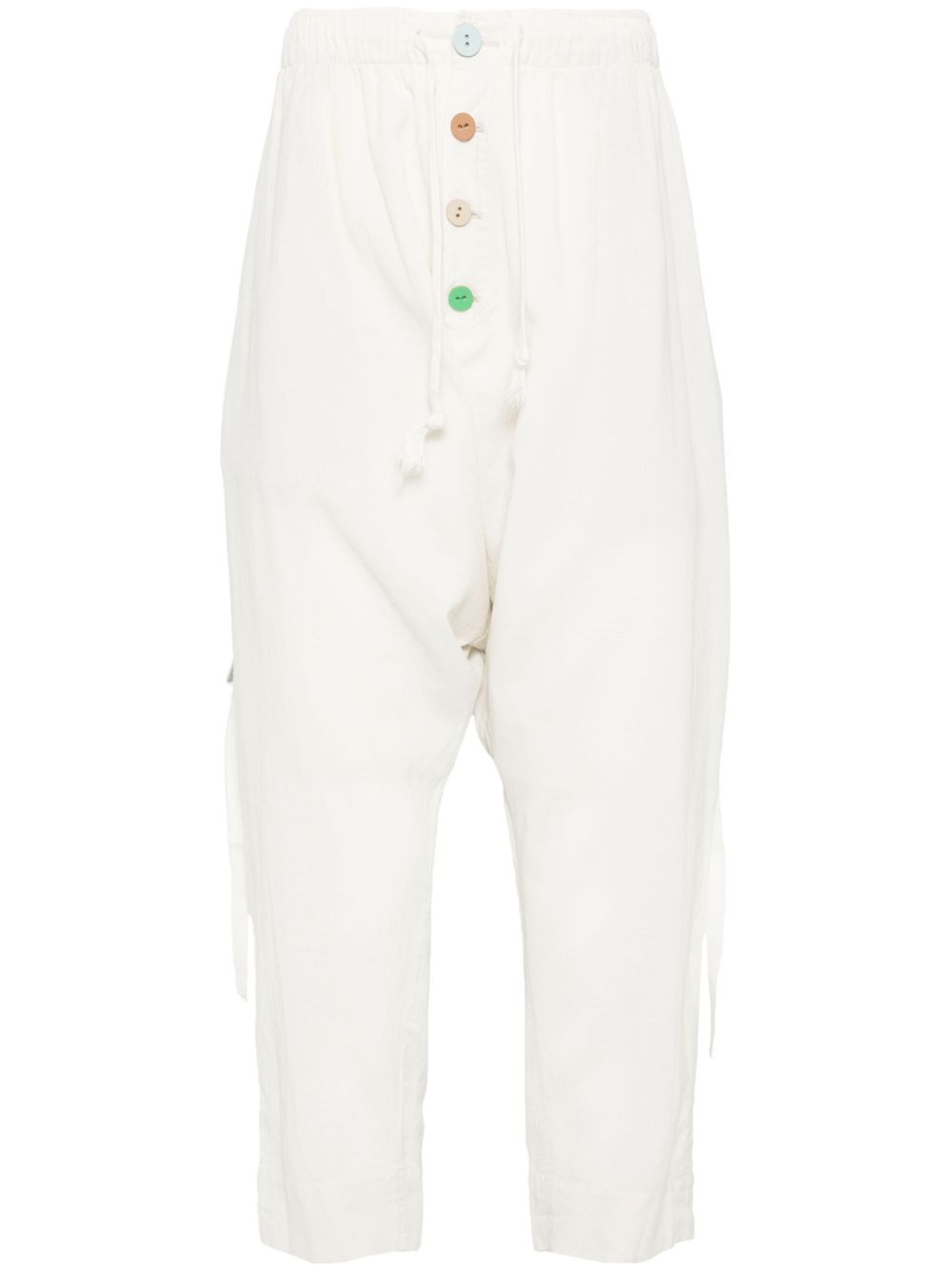 drawstring drop-crotch trousers Highlights - Off-white - Front button fastening - Elasticated drawstring waistband - Two side inset pockets Imported Composition Outer: Cotton 50%, Rayon 50% Washing instructions Dry Clean Only