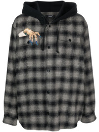 embroidered-detail checked hooded jacket Highlights - Black/multicolour - Cotton blend - Check pattern - Embroidered design - Drawstring hood - Front press-stud fastening - Long sleeves - Buttoned cuffs - Two chest flap pockets - Straight hem Imported Composition Polyester 50%, Cotton 50% Washing instructions Machine Wash