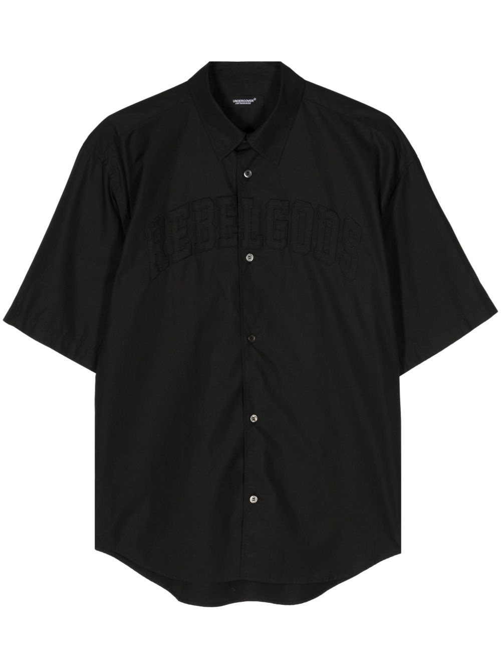 embroidered-motif poplin shirt Highlights - Black - Cotton - Poplin texture - Embroidered motif - Classic collar - Front button fastening - Short sleeves - Curved hem Imported Composition Cotton 100% Washing instructions Hand Wash