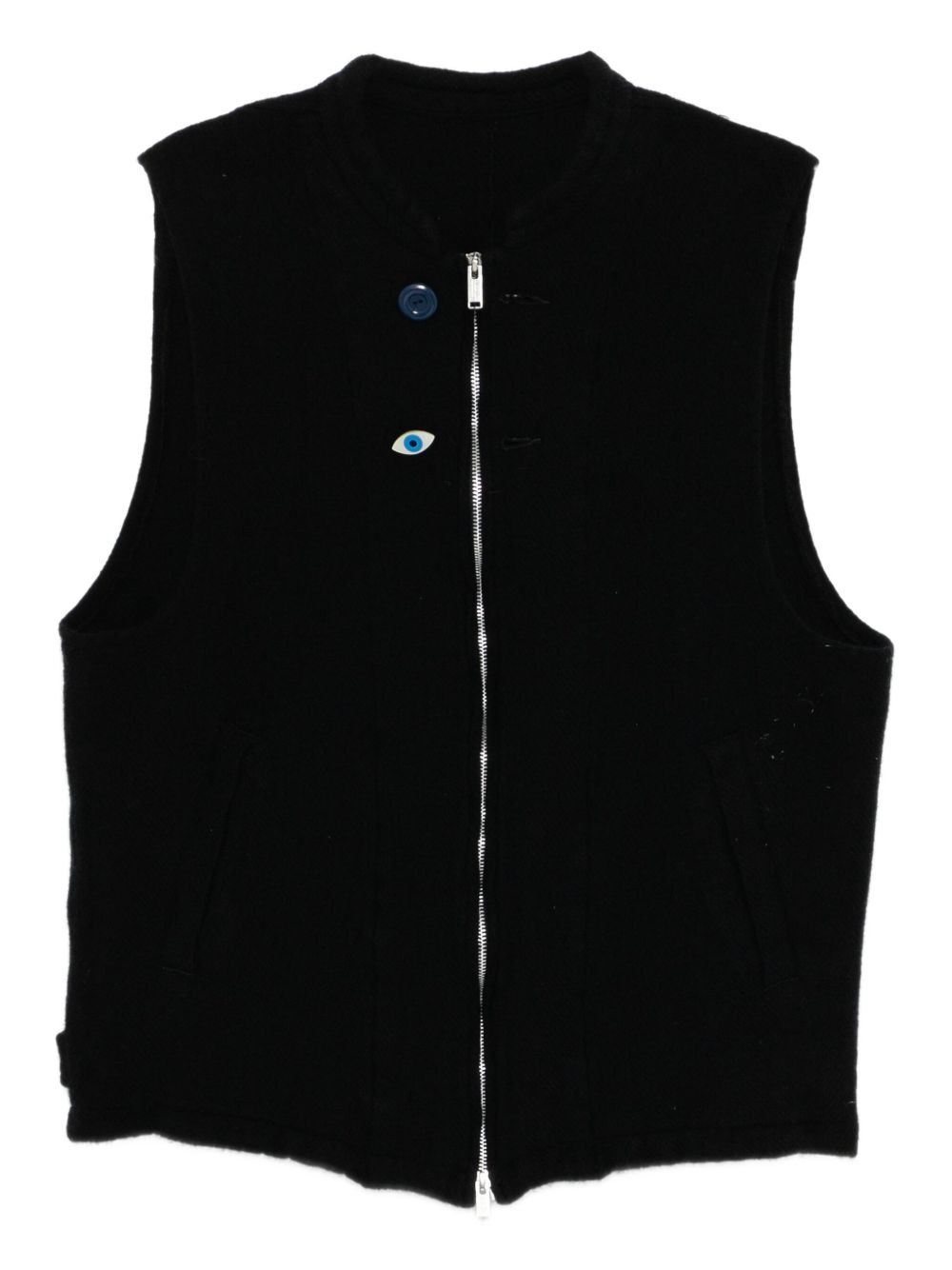 eye-embellished gilet Highlights - Dark blue - Front zip fastening - Crew neck - Sleeveless Imported Composition Wool 90%, Nylon 10% Washing instructions Dry Clean Only
