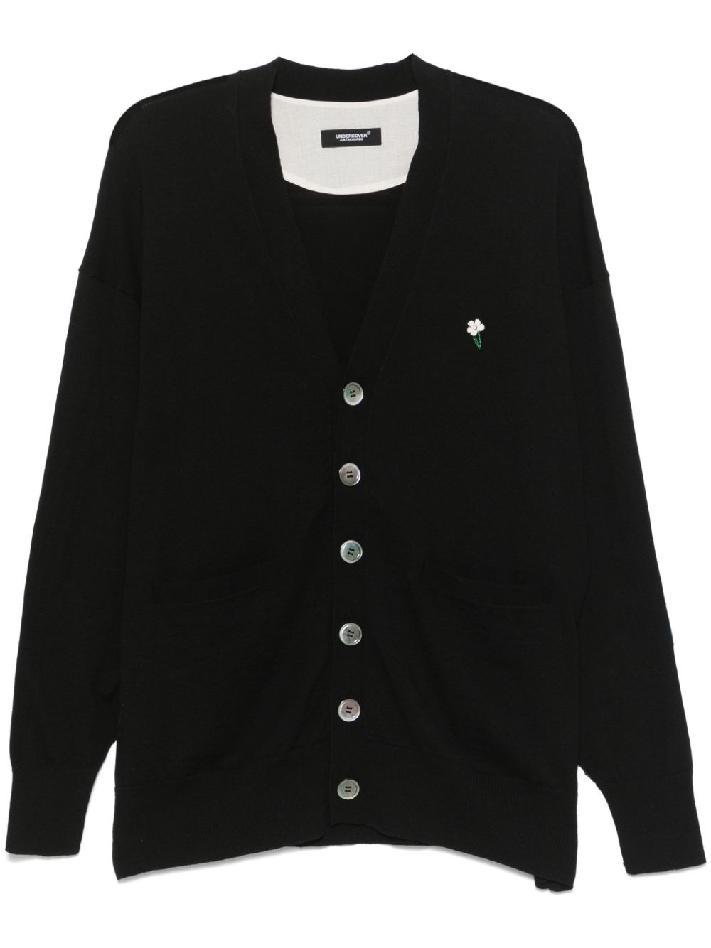 floral-applique cardigan Highlights - Black - Front button fastening - Drop shoulder - Two side patch pockets - Patch detail Imported Composition Lining: Cotton 100% Outer: Cotton 80%, Cashmere 20% Washing instructions Dry Clean Only