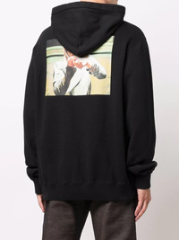 graphic-print hoodie black cotton graphic print to the rear drawstring hood long sleeves straight hem Imported Composition Cotton 100% SIZE & FIT Model measurements Height 6 ft 1 in(1.86 m) Bust/Chest 35.43 in(90 cm) Hips 35.43 in(90 cm) Waist 29.92 in(76 cm) Measurement CHEST 45.66 in(116 cm) Shoulder Width 19.68 in(50 cm) FittingInformation This piece fits true to size. We recommend you get your regular size Cut for a relaxed fit Made with a mid-weight fabric Washing instructions Machine Wash
