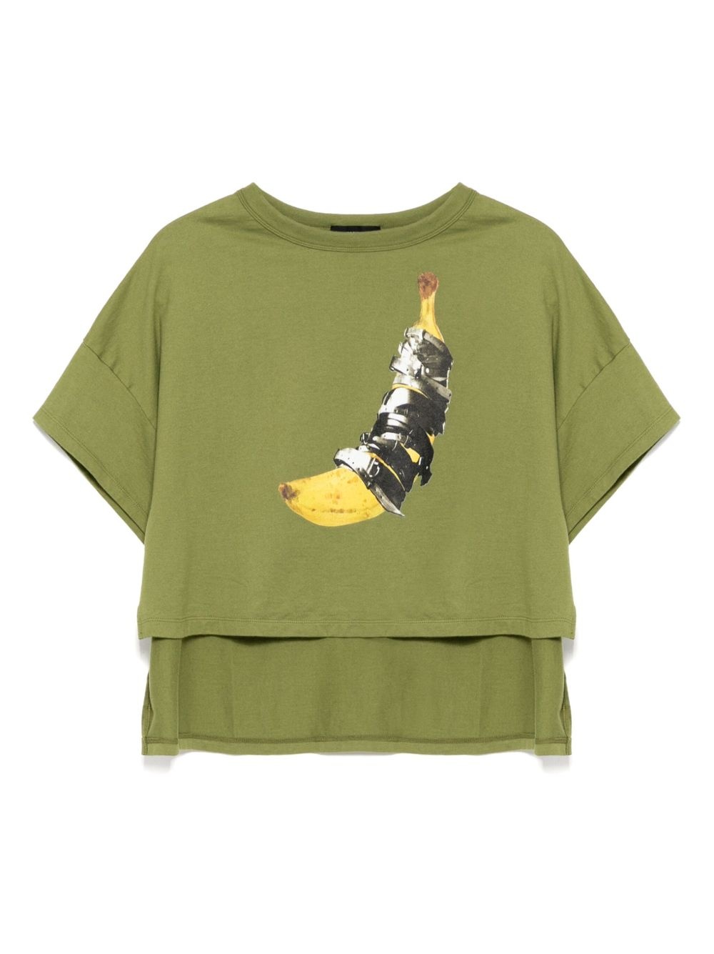 graphic-print T-shirt Highlights - Light olive green - Crew neck - High-low hem - Cropped Imported Composition Cotton 100% Washing instructions Machine Wash