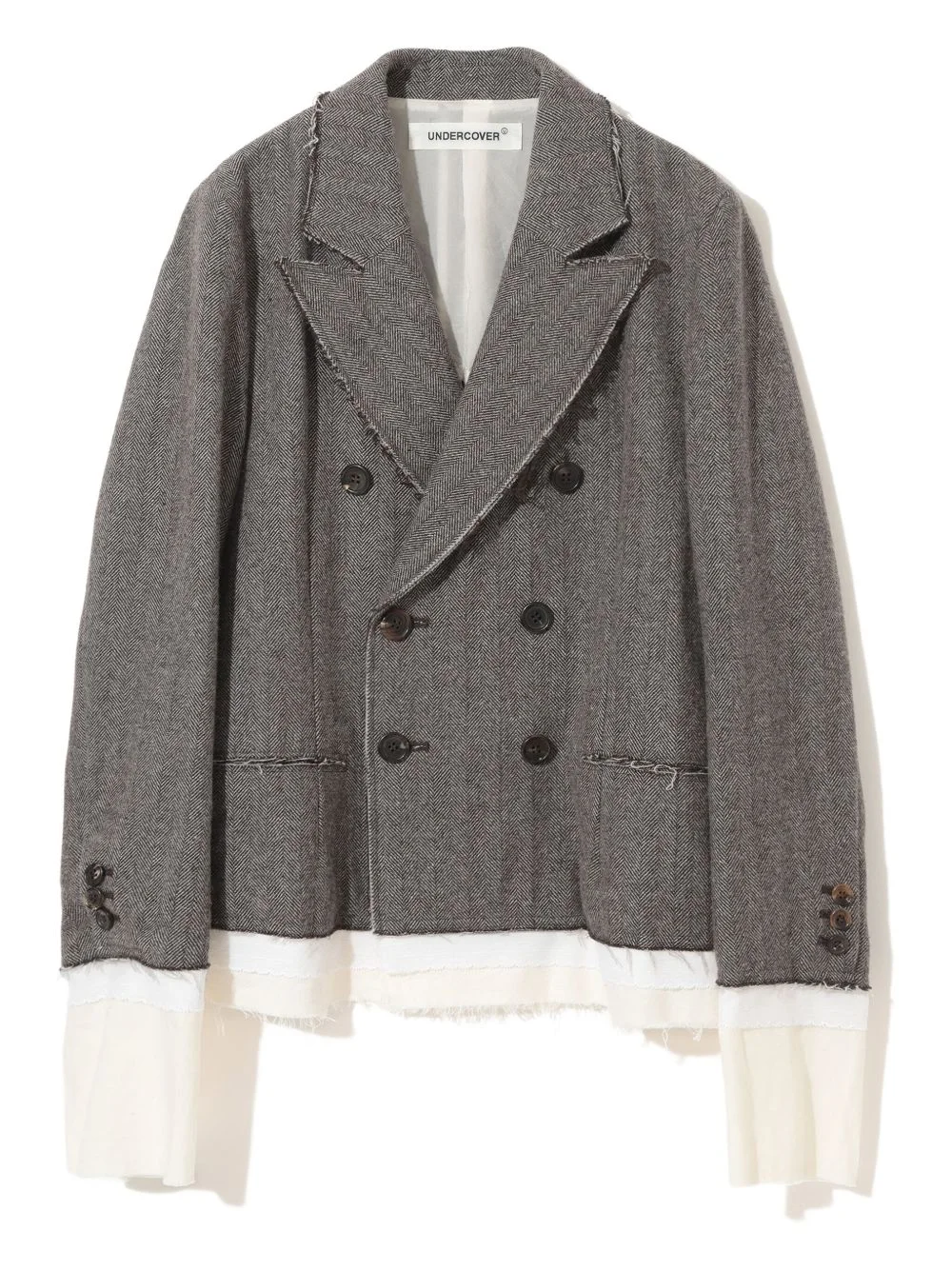 herringbone frayed blazer Highlights - Brown - Herringbone pattern - Frayed edges - Double-breasted button fastening - Buttoned cuffs Imported Composition Outer: Cotton 100%, Wool 72%, Polyester 20%, Acrylic 4%, Nylon 4% Lining: Cupro 100% SIZE & FIT FittingInformation Designed for a slim fit that sits just away from the body offering a close yet comfortable fit Made from a midweight non-stretch fabric Washing instructions Read Manufacturer Guidelines