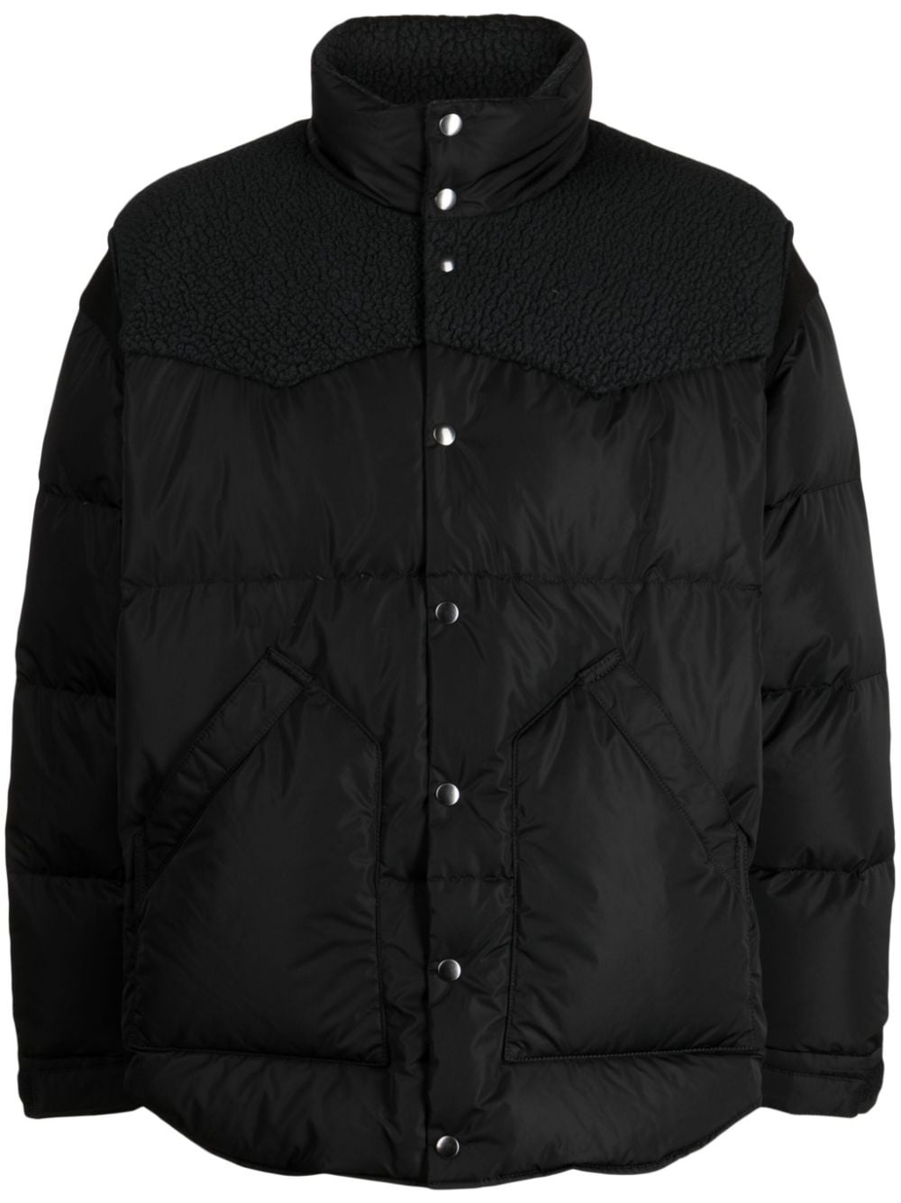 high-neck puffer jacket Highlights - Jet black - Down-feather filling - Padded design - Quilted - Tonal stitching - High neck - Front press-stud fastening - Drop shoulder - Long sleeves - Touch-strap cuffs - Two front welt pockets - Curved hem Imported Composition Lining: Nylon 100% Body: Polyester 100% Outer: Nylon 100% Filling: Down 90%, Feather 10% Cotton 100% SIZE & FIT Model measurements Height 6 ft 2 in(1.87 m) Bust/Chest 34.25 in(87 cm) Hips 36.22 in(92 cm) Waist 29.52 in(75 cm) Washing instructions Dry Clean Only