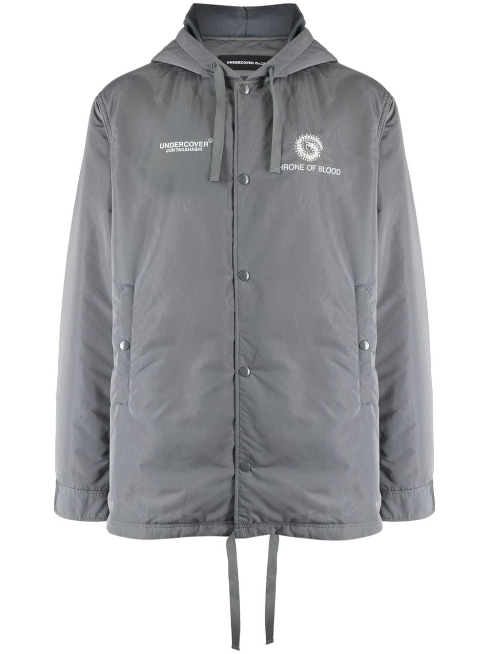 illustration-print hooded jacket Highlights - kackeillustration-style print - Grey - Logo print at the chest - Slogan print - Illustration-style print - Drawstring hood - Front press-stud fastening - Long sleeves - Drawstring hem - Straight hem Imported Composition Filling: Polyester 100% Outer: Polyester 100% Lining: Polyester 100% SIZE & FIT Model measurements Height 6 ft 2 in(1.87 m) Bust/Chest 34.25 in(87 cm) Hips 36.22 in(92 cm) Waist 29.52 in(75 cm) FittingInformation Designed to be unstructured, offering a loose fit throughout The internal drawstring at the hem allows for fitted preferences Made from a padded non-stretch fabric, giving it no natural elasticity This piece fits true to size – take your usual size