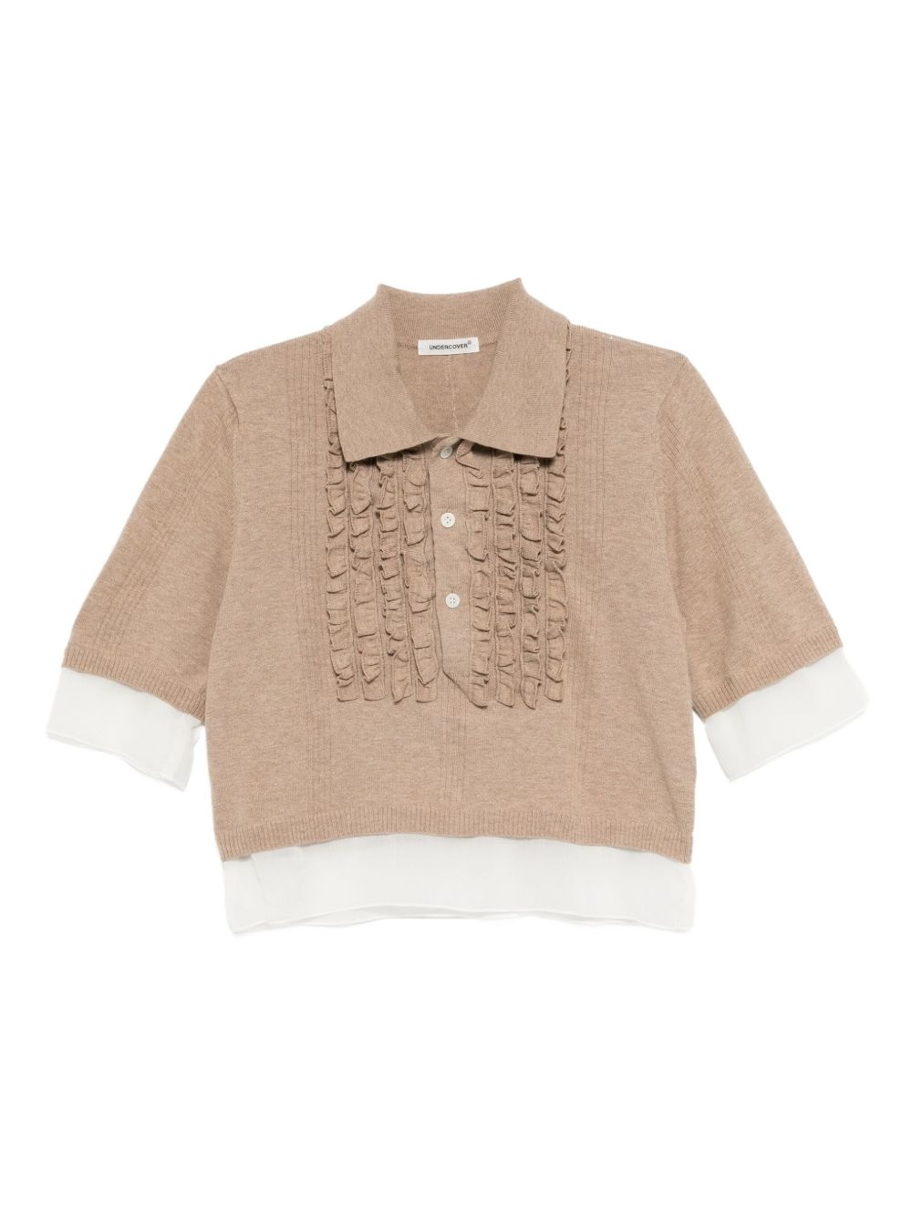 knitted polo top Highlights - Light brown - Front button fastening - Ribbed cuffs and hem - Layered design - Short sleeves Imported Composition Lining: Polyester 100% Outer: Wool 55%, Cotton 45% Washing instructions Dry Clean Only