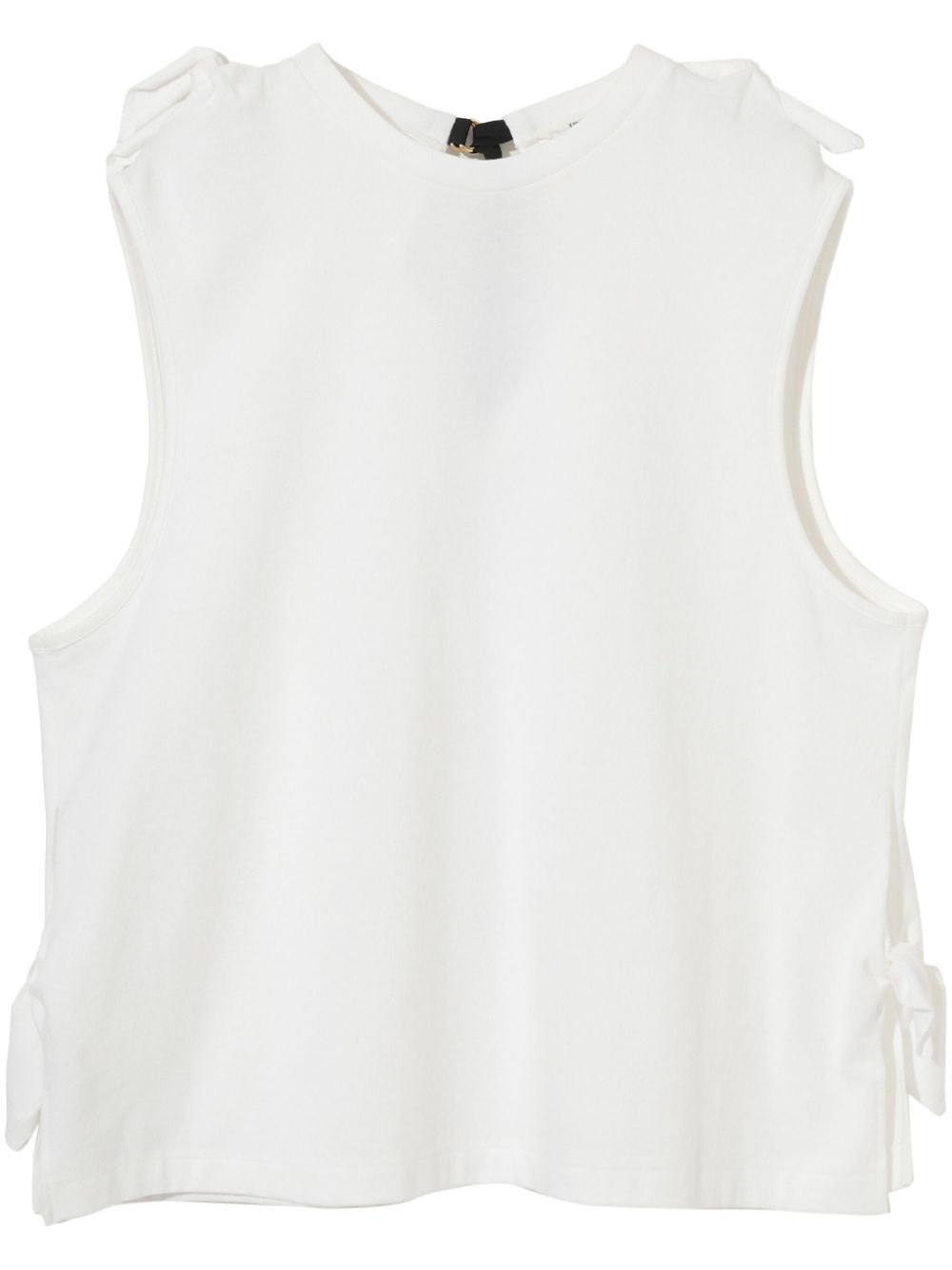 knot-detail tank top Highlights - White - Rear tie fastening - Side tie fastening - Knot detailing - Sleeveless Imported Composition Cotton 100% Washing instructions Read Manufacturer Guidelines