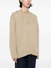 lace-up wool hoodie Highlights - Sand beige - Wool - Knitted construction - Classic hood - Front lace-up fastening - Drop shoulder - Long sleeves - Two side welt pockets - Ribbed cuffs and hem Imported Composition Wool 100% SIZE & FIT Model measurements Height 6 ft 2 in(1.87 m) Bust/Chest 33.07 in(84 cm) Hips 35.43 in(90 cm) Waist 26.77 in(68 cm) FittingInformation Designed to be unstructured, offering a loose fit throughout Made with a midweight knit, this piece offers some stretch This piece fits true to size – take your usual size