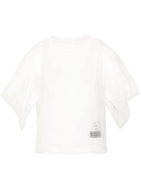 layered-design T-shirt Highlights - White - Cotton - Jersey texture - Georgette - Layered design - Logo patch to the front - Gathered detailing - Round neck - Cold-shoulder design - Short sleeves - Rear zip fastening Imported Composition Cotton 100%, Polyester 100% SIZE & FIT Model measurements Height 5 ft 9 in(1.75 m) Bust/Chest 34.64 in(88 cm) Hips 36.61 in(93 cm) Waist 26.37 in(67 cm) FittingInformation Designed for a relaxed fit, this piece allows for comfort and movement when worn Made from a midweight fabric This piece fits true to size – take your usual size