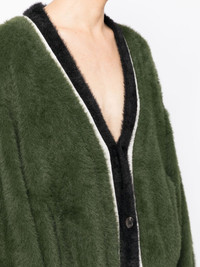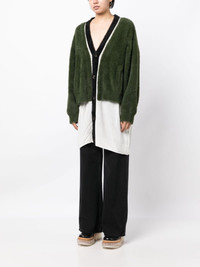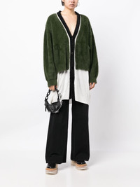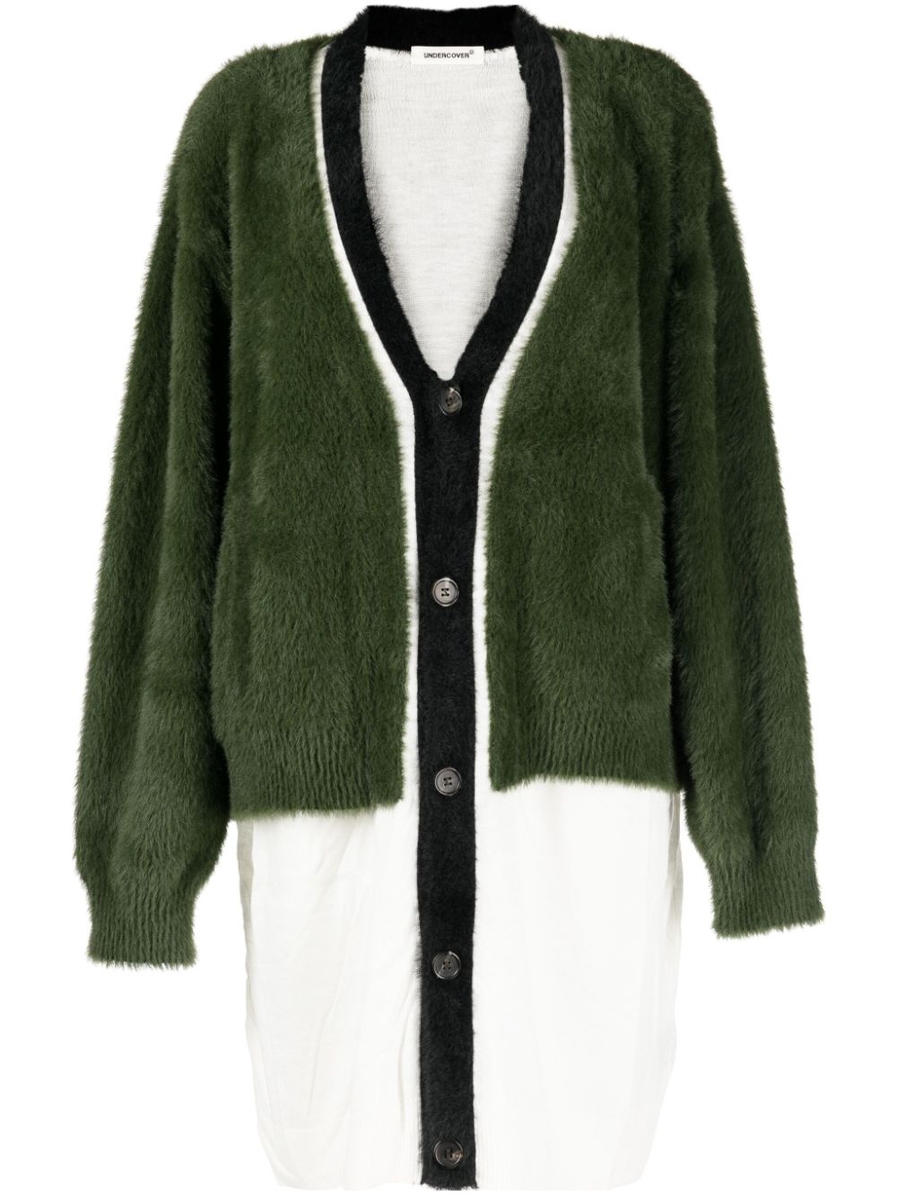 layered-design V-neck cardigan Highlights - Khaki - Layered design - Contrasting border - V-neck - Front button fastening - Long sleeves - Straight hem - Mid-length Imported Composition Nylon 84%, Acrylic 10%, Wool 6% SIZE & FIT Model measurements Height 5 ft 10 in(1.77 m) Bust/Chest 31.49 in(80 cm) Hips 35.43 in(90 cm) Waist 25.19 in(64 cm) FittingInformation Designed to be unstructured, offering a loose fit throughout Constructed with additional length on the sleeve Made with a midweight knit, this piece offers some stretch This piece fits large – take one size down Washing instructions Dry Clean Only