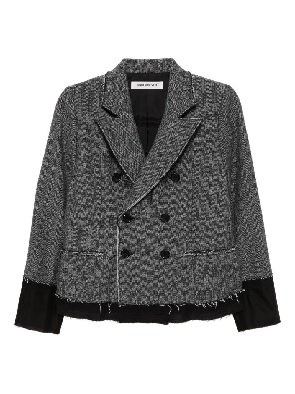 layered jacket Highlights - Stone grey - Double-breasted button fastening - Two front patch pockets - Long sleeves Imported Composition Outer: Wool 72%, Polyester 20%, Acrylic 4%, Nylon 4% Lining: Cupro 100% SIZE & FIT Model measurements Height 5 ft 10 in(1.78 m) Bust/Chest 30.31 in(77 cm) Hips 37 in(94 cm) Waist 24.8 in(63 cm) FittingInformation Designed for a slim fit that sits just away from the body offering a close yet comfortable fit Made from a midweight non-stretch fabric Washing instructions Dry Clean Only