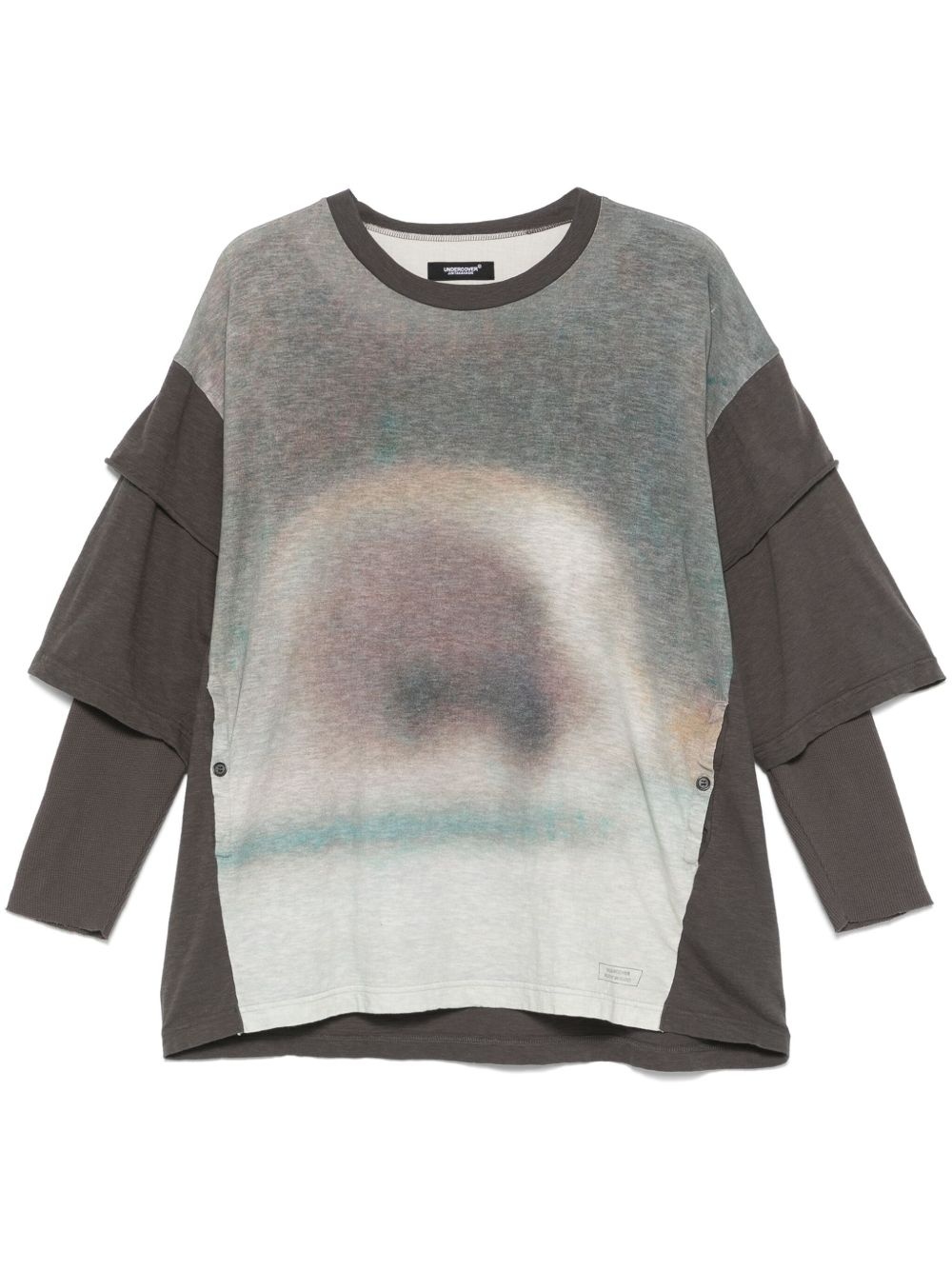 layered T-shirt Highlights - Charcoal grey - Crew neck - Drop shoulder - Two side button-fastening pockets - Abstract pattern print Imported Composition Cotton 100%